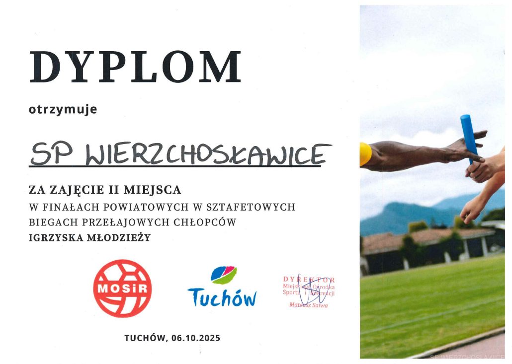 wybiegała 2 miejsce w Finałach Powiatowych w sztafetowych biegach przełajowych chłopców w ramach Igrzysk Młodzieży….